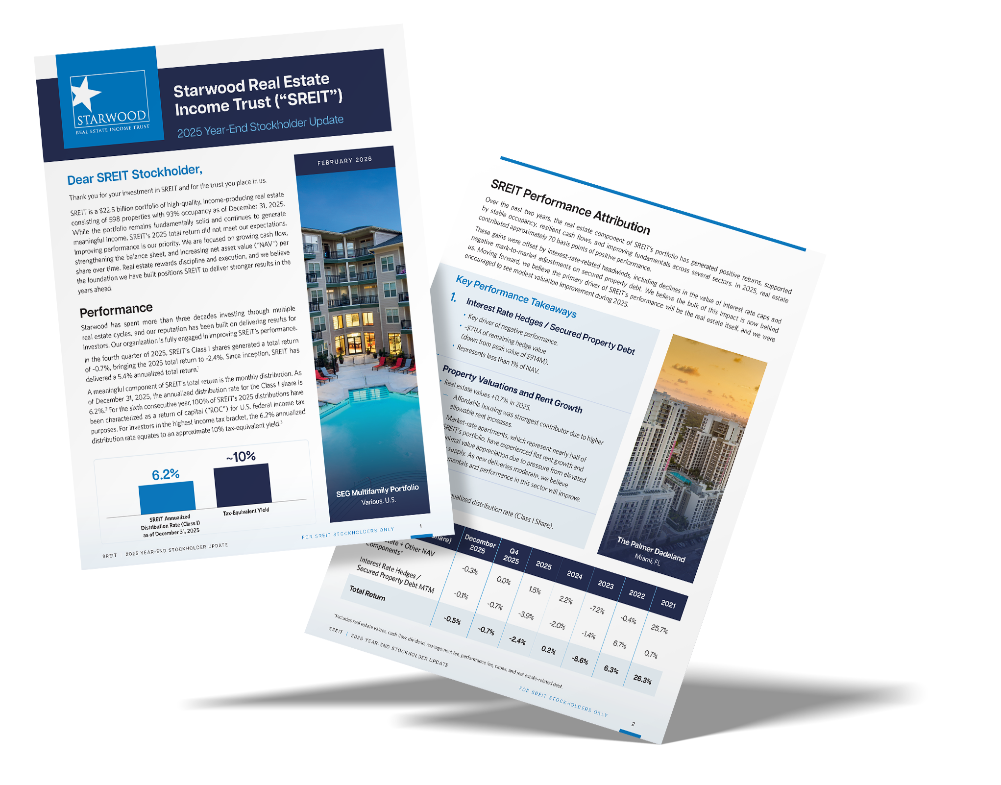 Barry Sternlicht, Jonathan Pollack, and Nora Creedon share Starwood Capital’s market outlook and an update on SREIT’s performance and portfolio.
